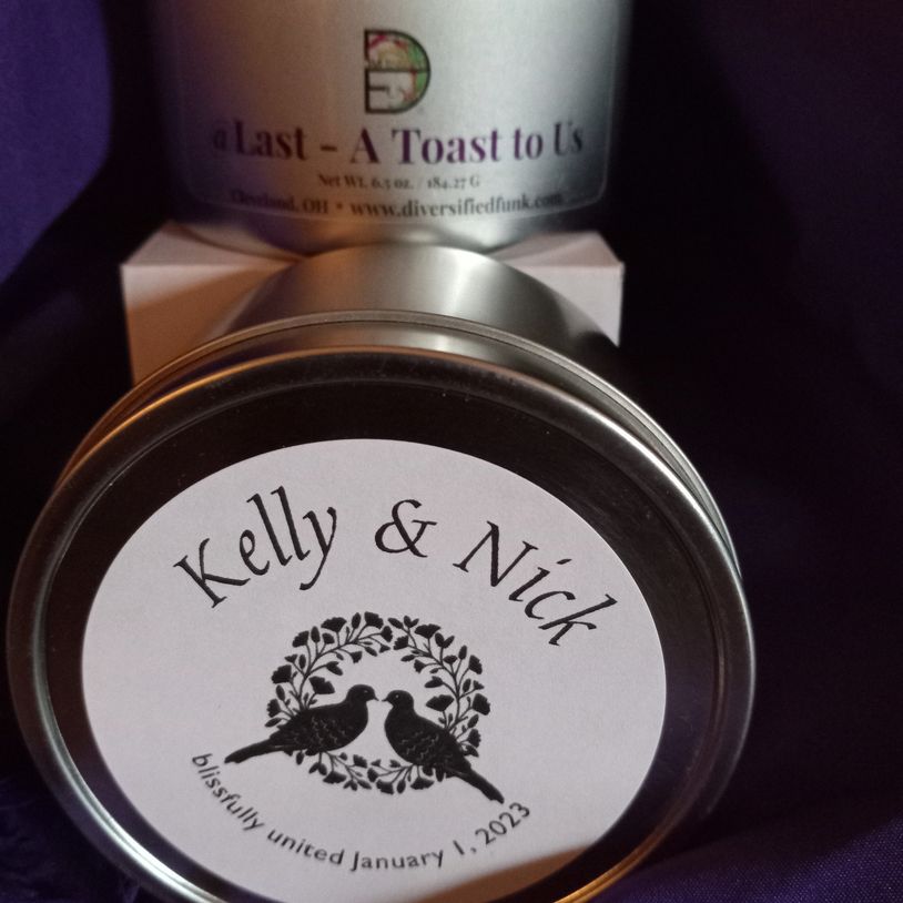Give your guests an aromatic, soy-based, essential oil candle in the scents of Champagne, Cabernet or your own distinct blend.